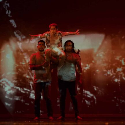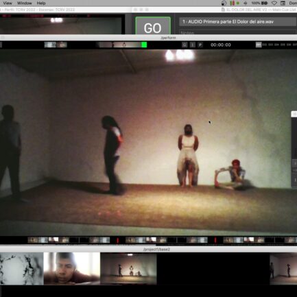 El 23 de julio de 2022 tuvimos el estreno de la pieza “El dolor del aire”. En colaboración con Leticia Alvarado/Tándem Cía de Danza y Landscape_artes escénicas, con Vivian Cruz y yo. Estrenamos esta pieza en el festival internacional Querétaro Experimental. Este estreno es además parte de nuestro plan anual de investigaciones escénicas además de una pieza que extrajo diversos esfuerzos creativos. La obra «El dolor del aire” es una obra donde Leticia Alvarado nos brinda un contenedor creativo inspirado en la obra del poeta Juan Rulfo. Esta pieza expone en múltiples capas la obra, los cuentos, la novela y el universo fotográfico de este autor. Mientras que Leticia Alvarado construye la propuesta coreográfica, nosotras nos dedicamos a construir una pieza de distintos ejes. Continuamos explorando la performatividad remota, la creación de universos del doble digital y así, es una colaboración muy especial, poder hacer una composición escénica total donde Rulfo fuera el pretexto para reunir estos universos creativos y crear una pieza de audacia, con colaboración remota, de gran formato y con un cuerpo de baile de talla internacional. El dolor del aire se estrenó en el Teatro de la ciudad de Querétaro.