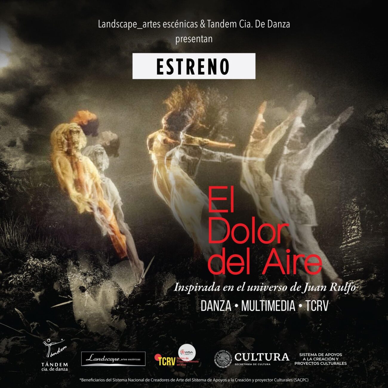 El proyecto con Leticia Alvarado-Tándem lo definimos en esta nueva etapa como una colaboración creativa entre Landscape_artes escénicas, la compañía que tengo en conjunto con Vivian, mi hermana y la compañía de Leticia Alvarado – Tándem Cia Danza. Creímos que de esta manera podemos crear un producto más grande a partir de la ignición creativa entre ambas agrupaciones creativas. Así pues Leticia me he propuesto trabajar esta nueva versión sobre el universo de Juan Rulfo con el título “El dolor del aire”. De esta manera, enfoque mis esfuerzos, tanto los míos como los de Landscape en generar una carpeta para presentar el proyecto para poder estrenarlo en este nuevo formato de colaboración buscando fondos para el pago del elenco y colaboraciones creativas.