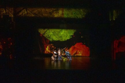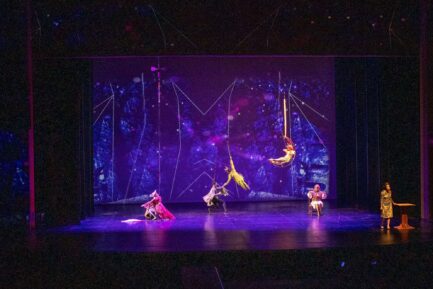 El elenco de la obra incluye un grupo diverso de bailarines, acróbatas, contorsionistas y artistas de números aéreos, que, junto con el diseño multimedia, dan vida a un espectáculo de gran formato que explora la contemplación y la conexión emocional.