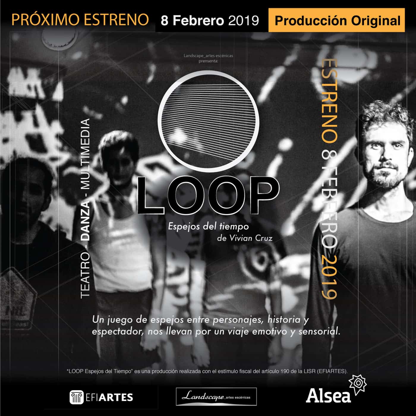 Es dispositivo multimedia que desarrolle para LOOP Espejos del tiempo es un dispositivo híbrido que manipula en tiempo real audio, video, iluminación, 4 cámaras de cctv, un biosensor insight, comparte información por OSC y DMX. Este dispositivo está concebido en Isadora, Touchdesigner, Qlab, Node-red entre otros softwares que qué permiten contestar está complicada tarea en un operador.