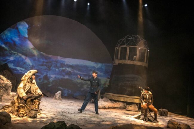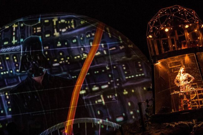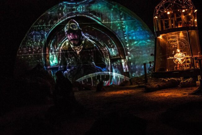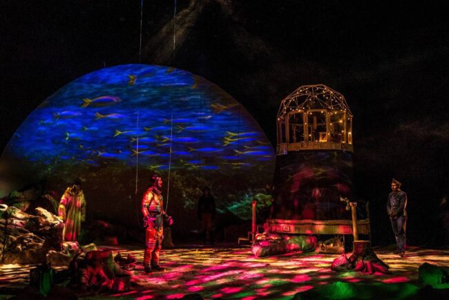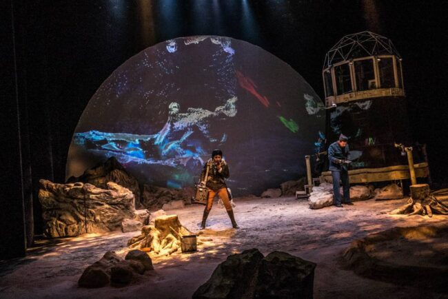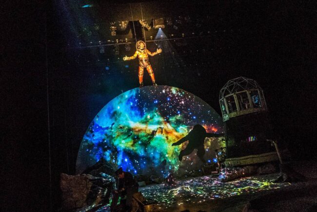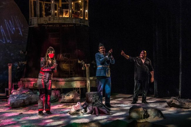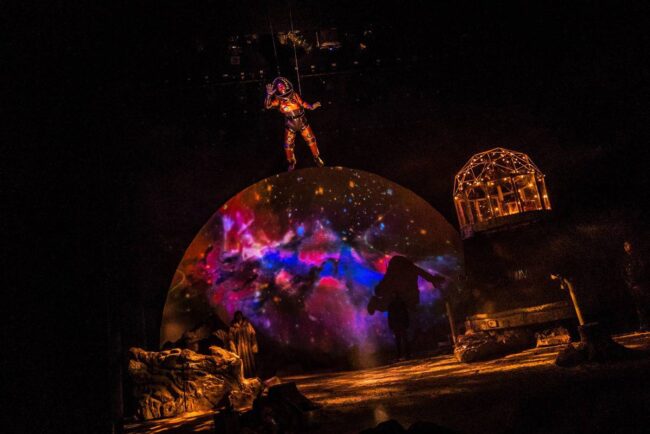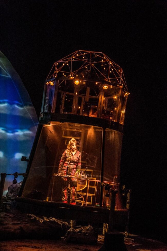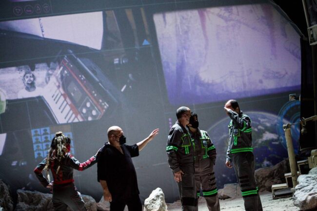 David Psalmon dice que tratar de convencer al espectador, que está en un universo paralelo, donde los tiempos se cruzan y el año es 3049, es muy difícil con el propio recurso de la palabra y la escenografía, pero junto con su elenco, creativos y técnicos hace el intento para que así suceda de principio a fin en esta pieza escénica, para la que se emplean muchos recursos que ayudan al asistente a emprender el viaje, sin verse afectado por las fuentes de radiación lumínica. Para que esta travesía sea factible y del todo creíble, la escenografía de Ana Patricia Yáñez contribuye con creces, lo mismo que la enorme riqueza del diseño sonoro de Daniel Hidalgo y el de videoarte de Héctor Cruz.