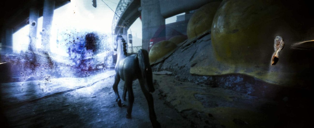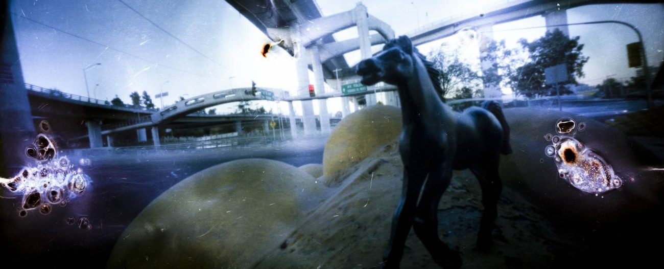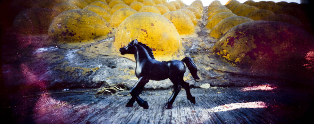 En esta serie, construyo un mundo donde conviven paisajes cotidianos con seres miniatura, una familia estereotipo de los años 60, un caballo vaquero y un árbol de plástico de set indio; un juguete popular que crean una serie de intervenciones inverosímiles en paisajes mundanos. En ese sentido, estas imágenes como el sueño, se convierten en un punto de convergencia de pensamientos, preocupaciones, deseos y hábitos que se mezclan con paisajes habituales, enviándonos en cada composición, un mensaje cifrado en voz del inconsciente, así, estas imágenes se gestan más como una materialización de esos mensajes que hablan directamente con la esencia personal. La mujer, el hombre, un árbol y un caballo nos guían a través de esos paisajes pidiendo que vayamos con ellos en un viaje rasante, en un vuelo audaz cerca del suelo.
